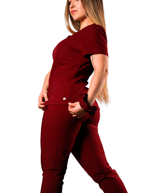 Polera clínica antifluido Mujer 6022 Vino Antifluido Valere Flex